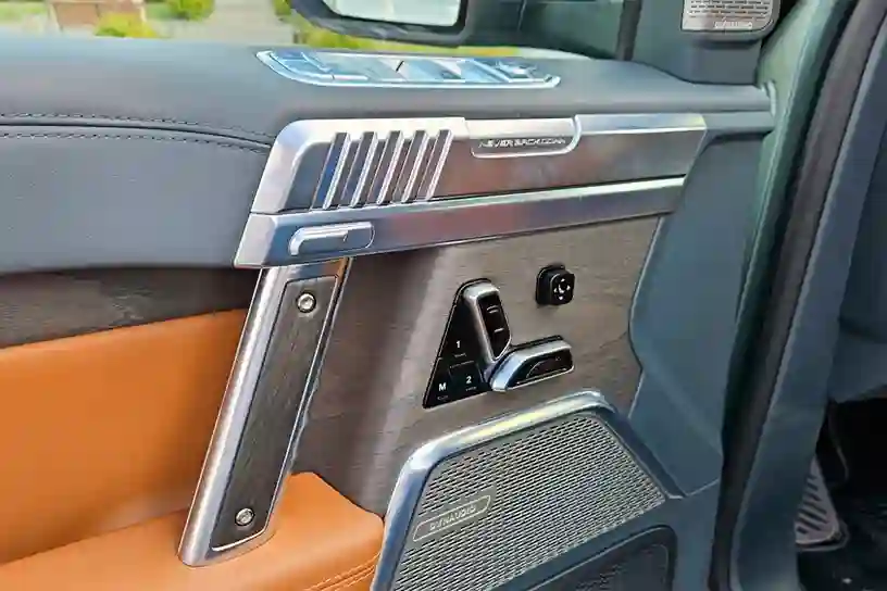 Как и многие другие китайские автомобили, эпатажный M‑HERO не обошли некоторые странные моменты. Например, дверные ручки тут напоминают электромобили Volkswagen ID, а кнопки бесконтактного доступа есть на каждой из них, что хорошо. Однако у всех дверей, кроме багажной, доводчиков нет. Возможно, это сделано специально, чтобы, хлопая тяжелой дверью, вы вместе с пассажирами еще больше прониклись духом брутальности.